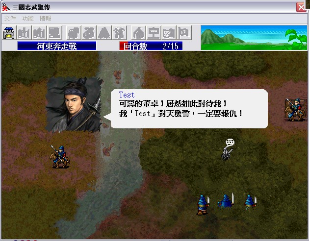 擊退呂布後 呂布使出白虎降臨 友軍和敵軍全滅 只剩呂布和關羽 關羽再次轉英雄